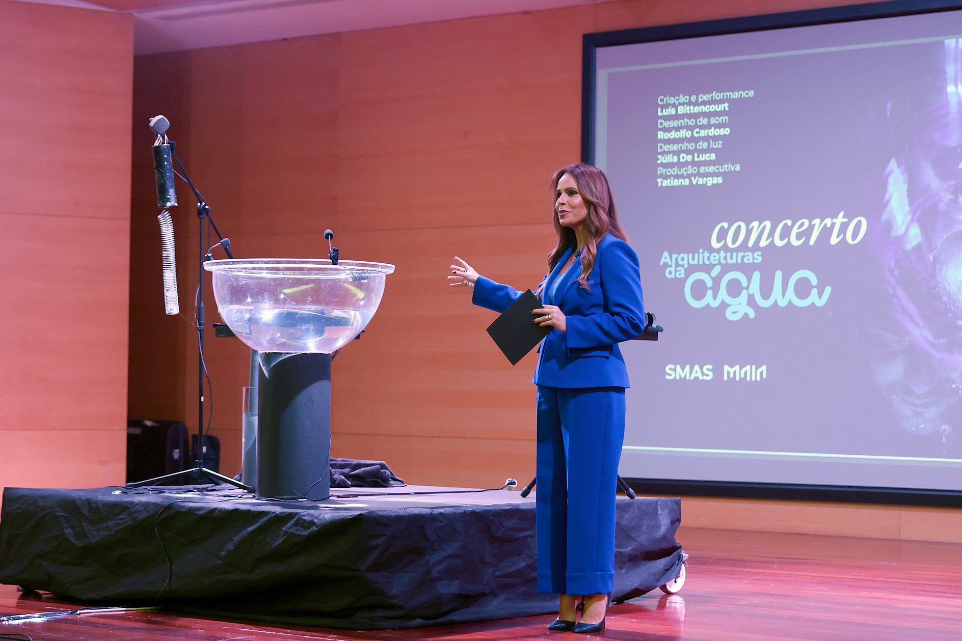 Os SMAS da Maia, entidade pública que têm a missão de garantir o provimento de água potável nas torneiras dos consumidores do território maiato ofereceram aos presentes nesta sessão o concerto, de entrada livre, “Arquiteturas da Água”, um espetáculo visual e sonoro hipnotizante que apresentou a água como um verdadeiro instrumento musical e objeto de exploração artística pelo percussionista Luís Bittencourt, que desvendou o seu potencial através de uma incrível variedade de gestos, técnicas de performance e experimentações sonoras.